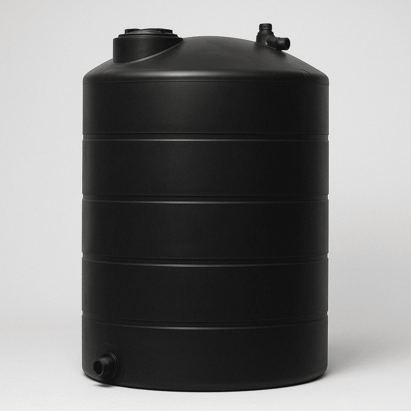 ?Heavy-duty black HDPE tank for long-term above-ground water storage